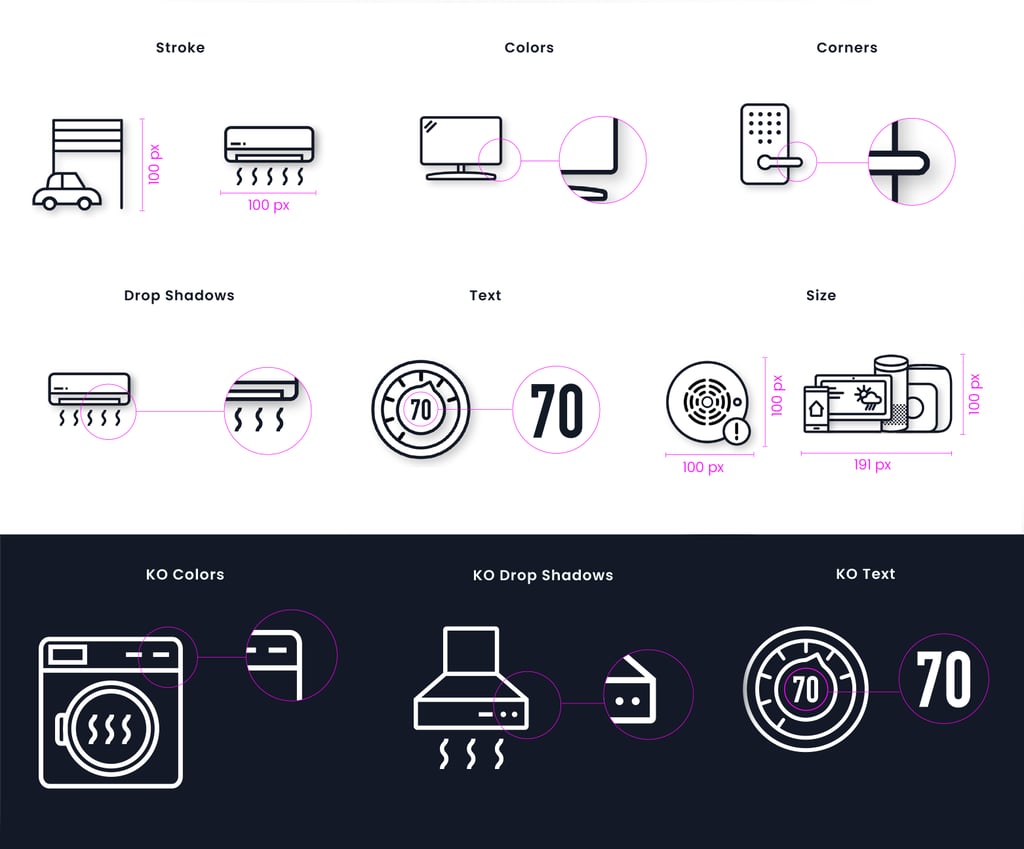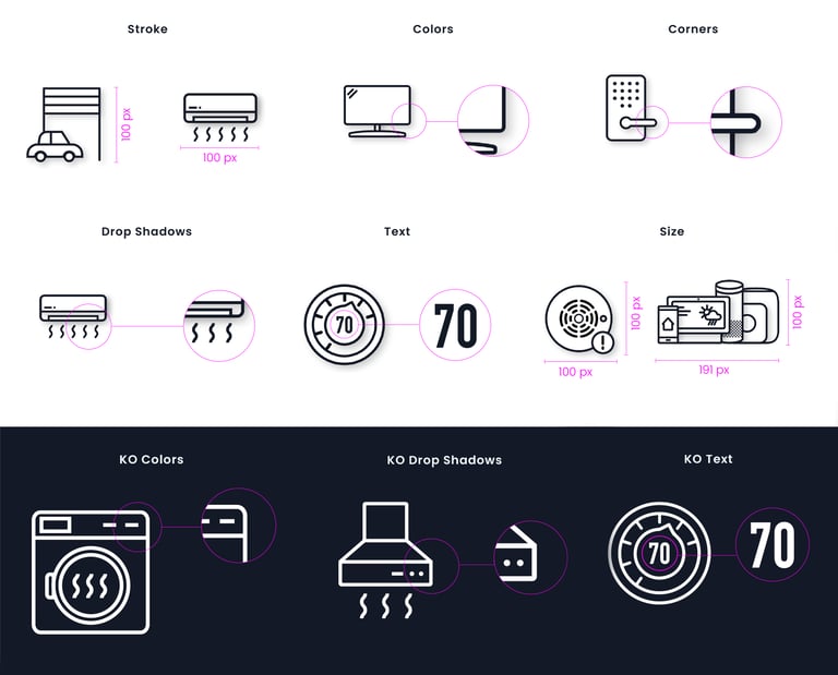 Documentation: I authored guidelines for corner radii and line endings so new icons could be added to the set without visual drift.