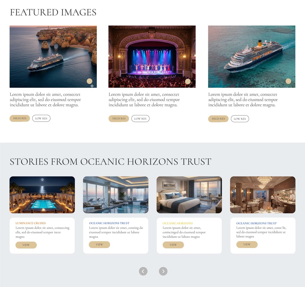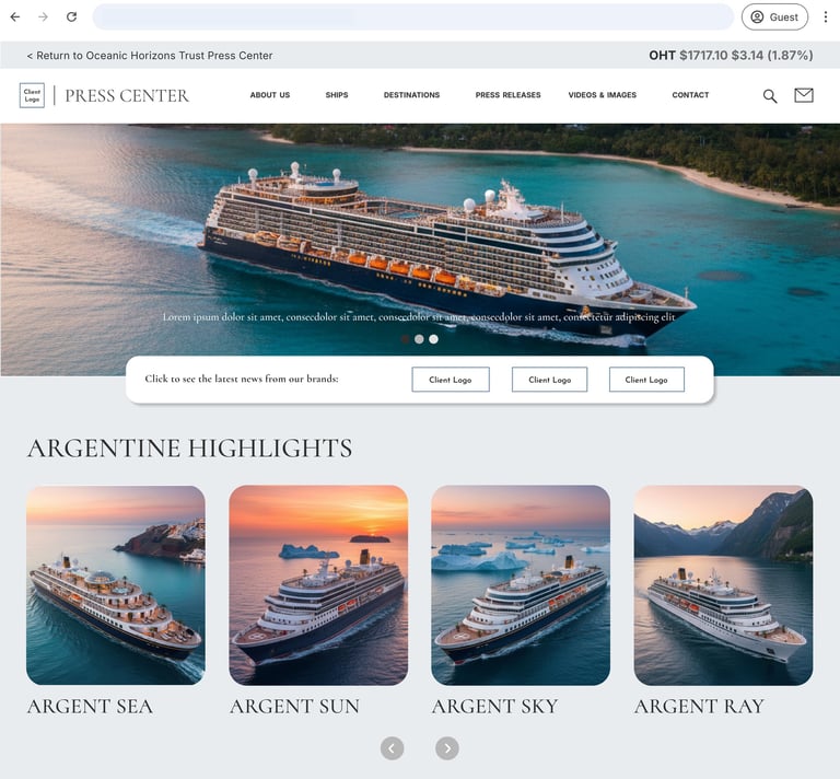 I worked on the design and rollout of a unified digital press framework used across a global cruise portfolio. The goal was to create a modular system that allowed the parent company to house multiple sub-brands within a single, cohesive architecture. This approach allowed us to launch news for different brands efficiently while keeping the user experience consistent for journalists and investors.